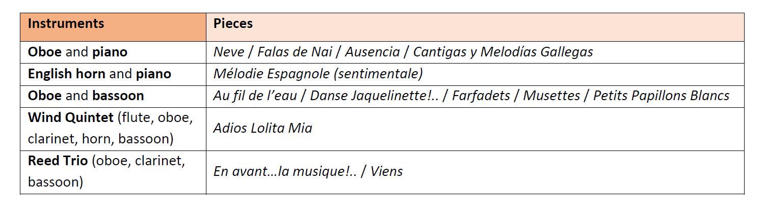 - Arranged for: oboe and piano