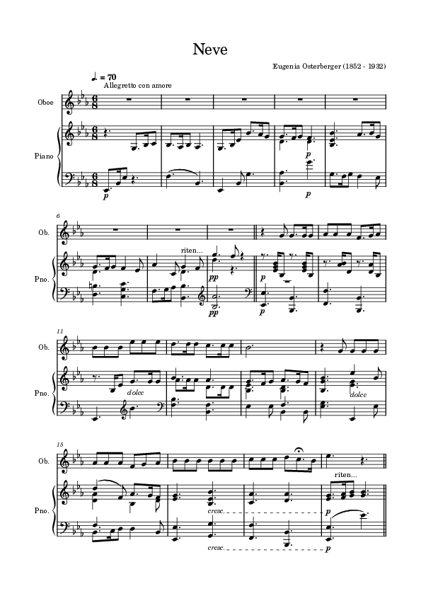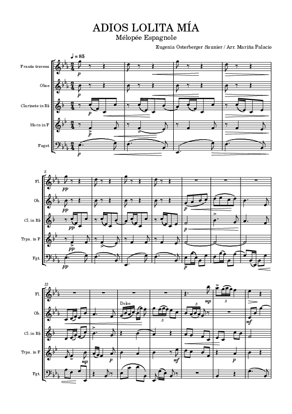 Below, the arrangements of works by Eugenia Osterberger developed in this research are available for consultation, along with their corresponding original scores. In certain cases, explanatory notes are provided regarding the arrangements or scores that, while not transcribed and re-edited, contain slight modifications or allow interpretation through the original score.