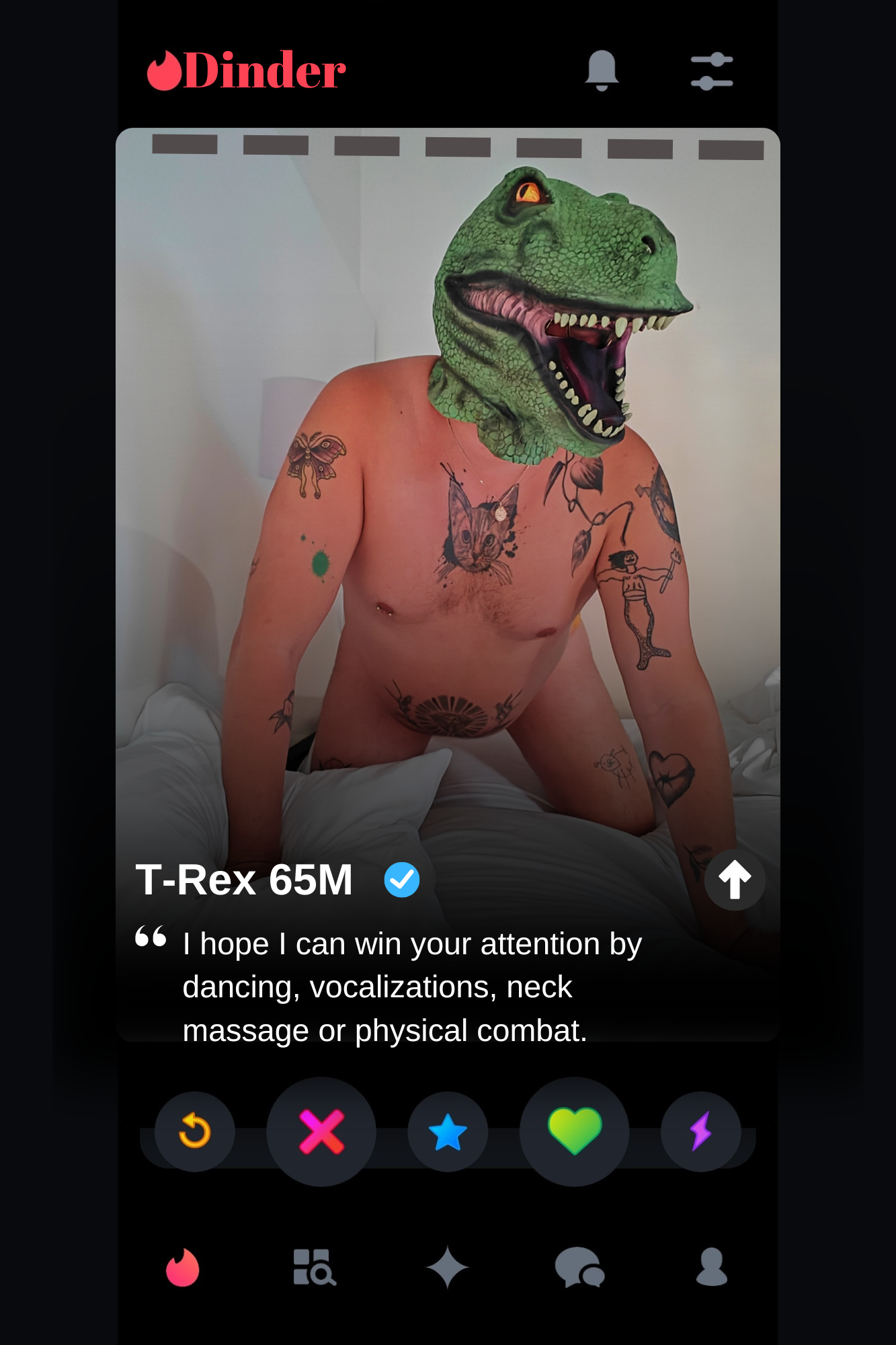 I am single after 19 years of relationship and marriage. I've had to learn how to use dating apps while doing my research. Dating experiences started to mix with my research and I started doing related performances for the camera. I edited the photos to look like they were on a dating app.