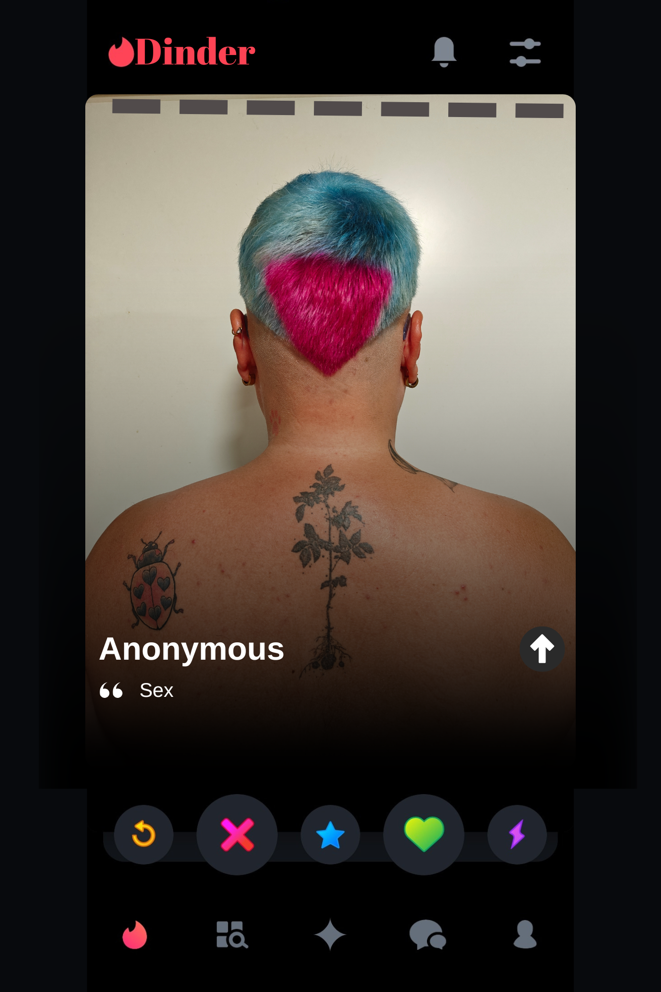 I am single after 19 years of relationship and marriage. I've had to learn how to use dating apps while doing my research. Dating experiences started to mix with my research and I started doing related performances for the camera. I edited the photos to look like they were on a dating app.