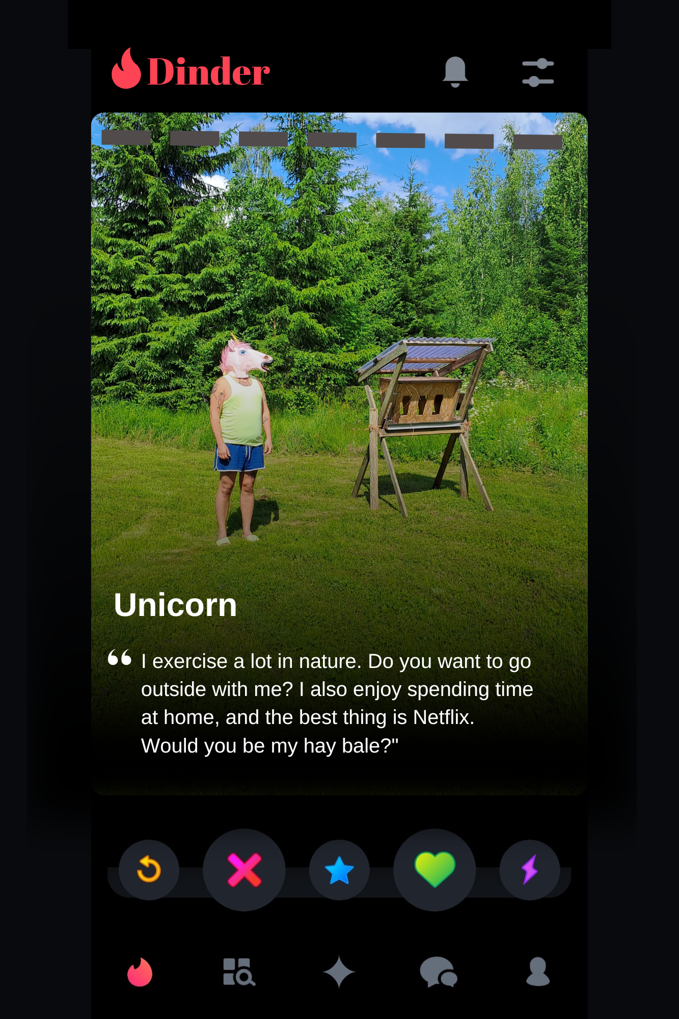 I am single after 19 years of relationship and marriage. I've had to learn how to use dating apps while doing my research. Dating experiences started to mix with my research and I started doing related performances for the camera. I edited the photos to look like they were on a dating app.