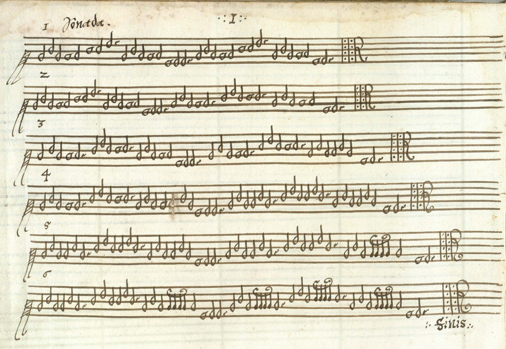 There are only two manuscripts known to contain music written for the trumpet which can be dated to the 16th century and they both originate in the court of Christian IV of Denmark. Written by the German Hoftrompeters Magnus Thomsen (1562-1612) and Henrich Lübeck (d. 1619) during their time working as court trumpeters at the royal court of Denmark, 1596-1612 and 1596-1619, respectively1, Lübeck’s is dated 1598 but there is no indication on Thomsen’s, they are the oldest documents of trumpet music to be preserved to this day. As the only manuscripts of the 16th century, they are an immensely important source to understand what and how trumpet ensembles played, and among Cesare Bendinelli’s (c. 1542-1617) Tutta l’arte della Trombetta (1614), they are the only manuscripts to represent a style of music played in European courts throughout the 16th century. They contain hundreds of so-called sonatas, which consist of a fanfare-like melody in the principal register which is repeated and expanded upon several times, usually becoming more rhythmically elaborate each time. The Thomsen manuscript also includes a few shorter fanfares such as Toccedas, Ingangs, Serrenedas and duets.