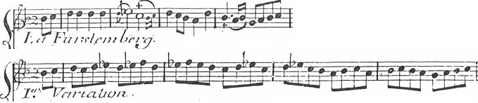 The first variation of La Furstemberg by M. Blavet is a great example of the traditionally-shaped diminutions, which could be learned typically from the diminution treatises of the 16th century.