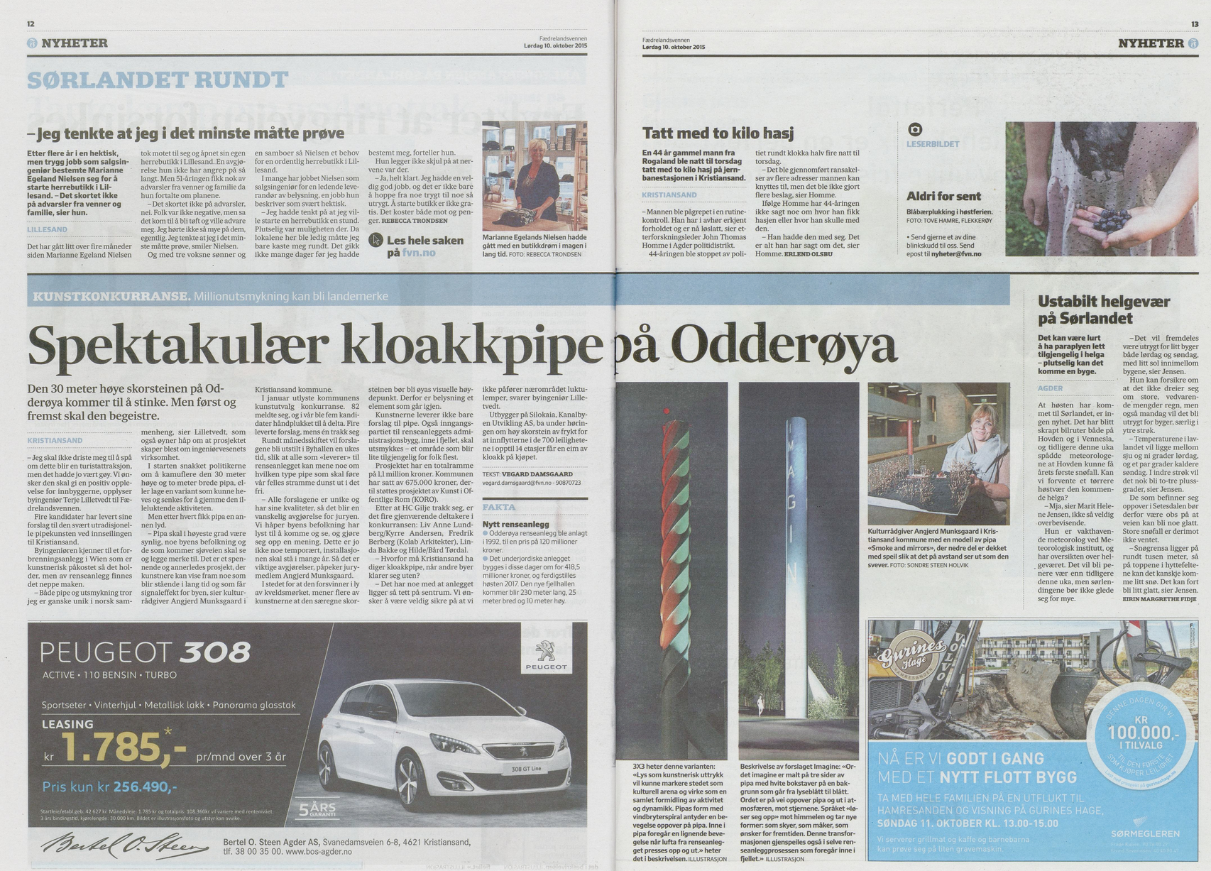 Arbeid som kunstkonsulent. På oppdrag av Agder Kunstsenter med Kristiansand kommune som byggherre ved Odderøya Renseanlegg.