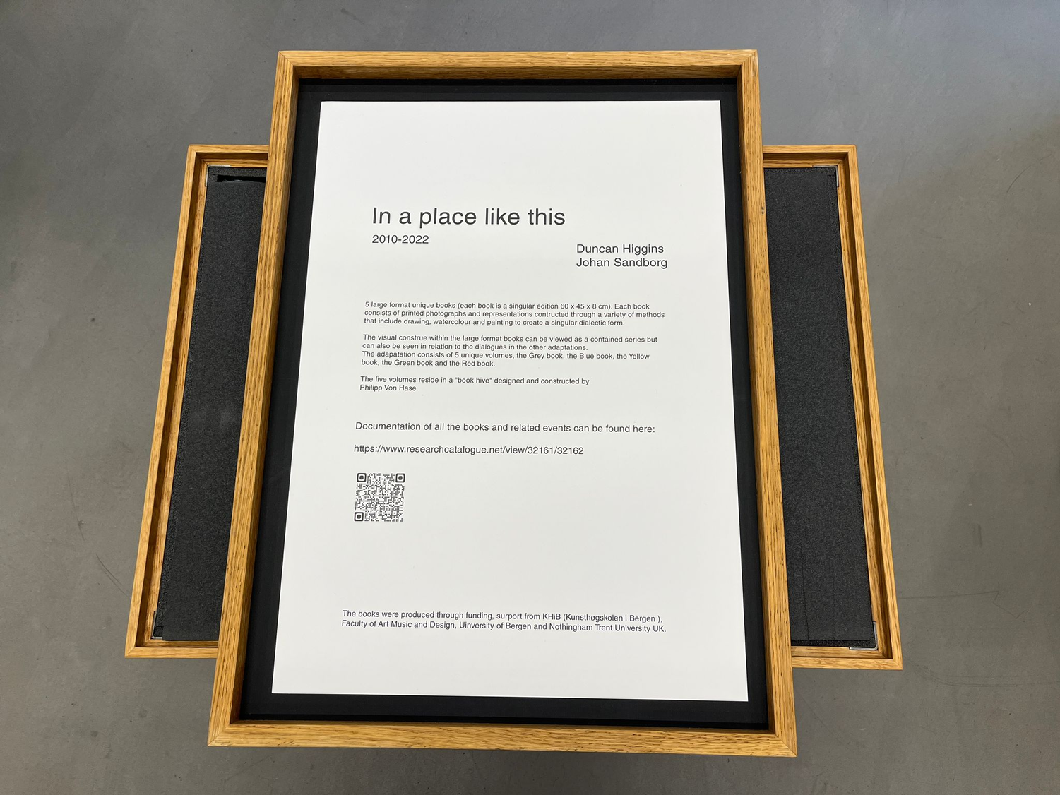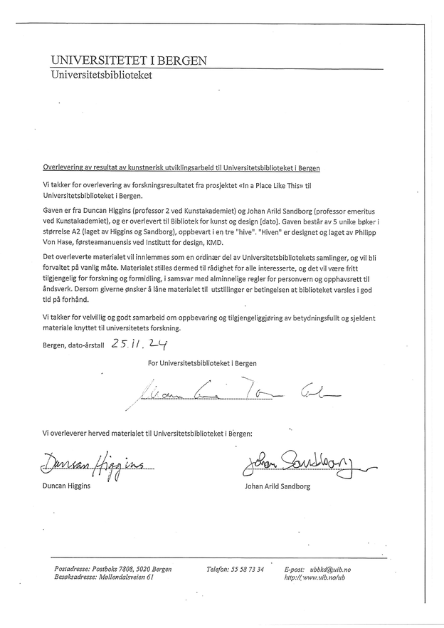 From 11th November 2024, In a place like, this now lives in the Fine Art and Design Library, University of Bergen, this is now its permanant home.