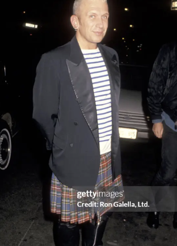 In the 1980s and 1990s, celebrities and musicians such as David Bowie and Kurt Cobain were seen in skirts, introducing the idea that clothing could be a way of subverting social expectations. Today, we can think of Jules Koundé, Brad Pitt and Harry Styles.