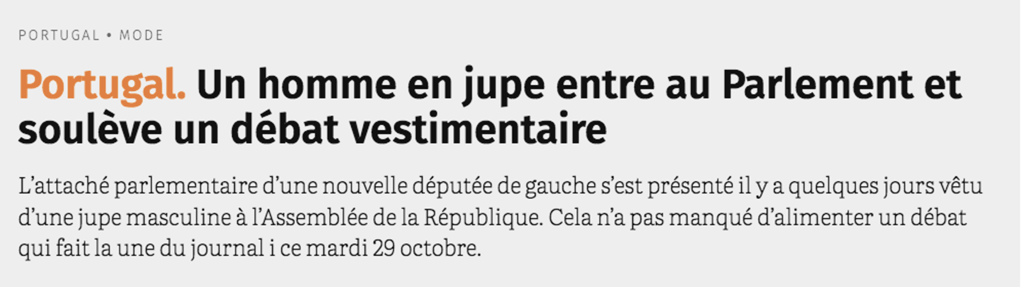 In Portugal, for example, a man wearing a skirt in a political context recently attracted a lot of attention.