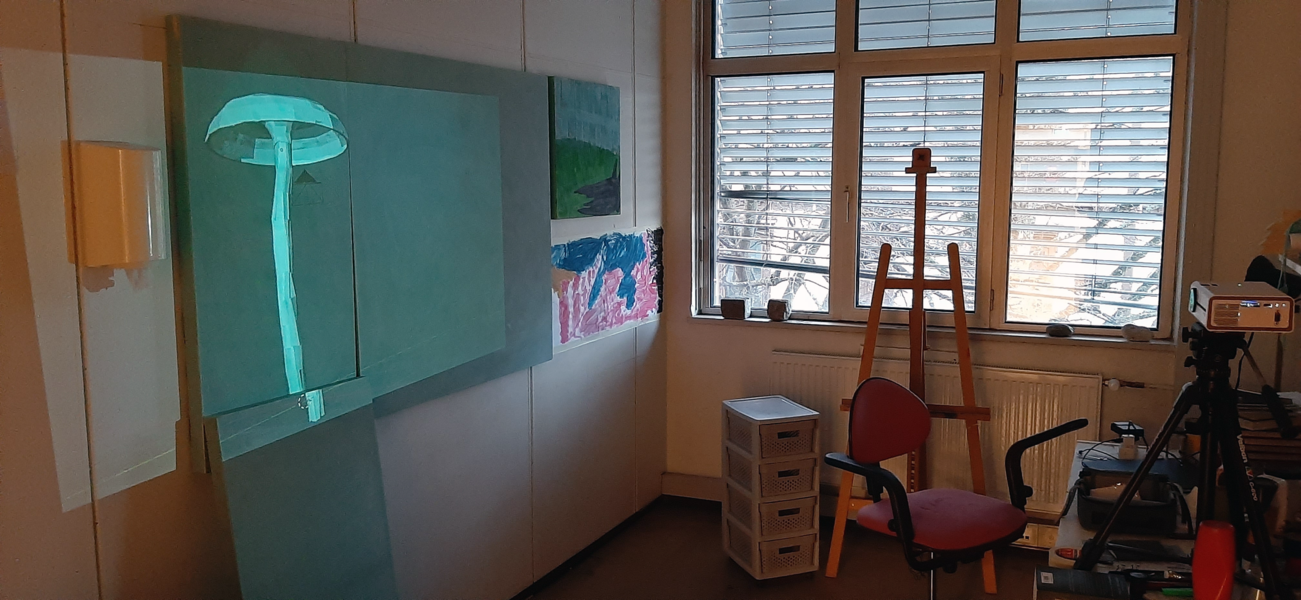 Edited the screen recordings toghether with the animations, screenshots and some other pictures from this semester. The video will play in my studio during open academy, with analog photographs and the text hanging on / around the door. And two paintings hanging on a wall.