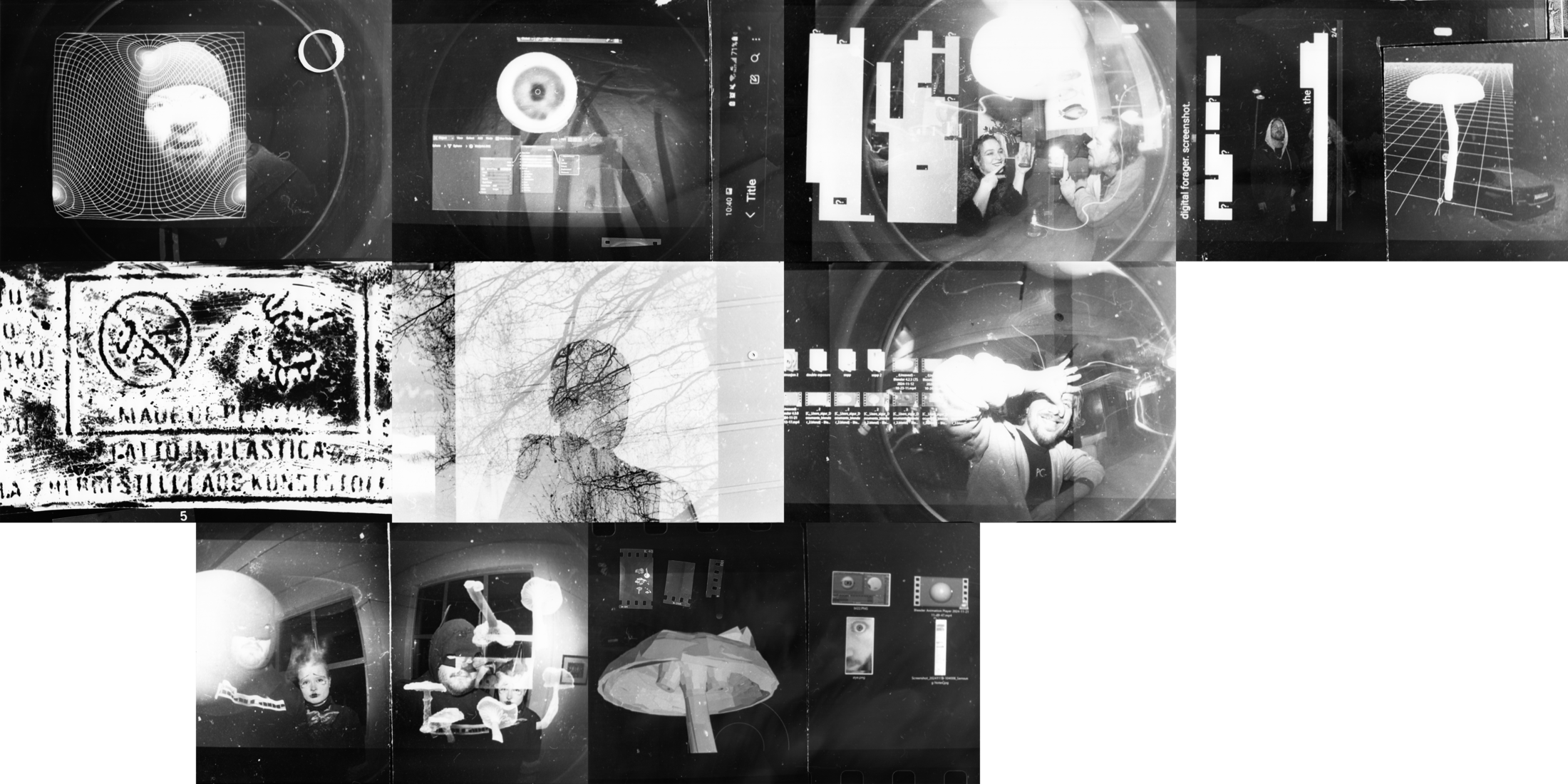 I had shot a roll of film that was almost complete, so I shot the last couple of pictures, (they didn’t come out, but that’s a different issue,) then I loaded the film again in another camera, to shoot double exposure with images from blender. Screenshot. I projected the images in Kunstarken, with the camera on a tripod. In the darkroom I did very simple exposures, only physically cutting the film itself with scissors for a couple of pictures. Outside of that the double exposures were captured in the camera, the positioning random. I probably should’ve done some exposures that weren’t as centered in the frame, next time.