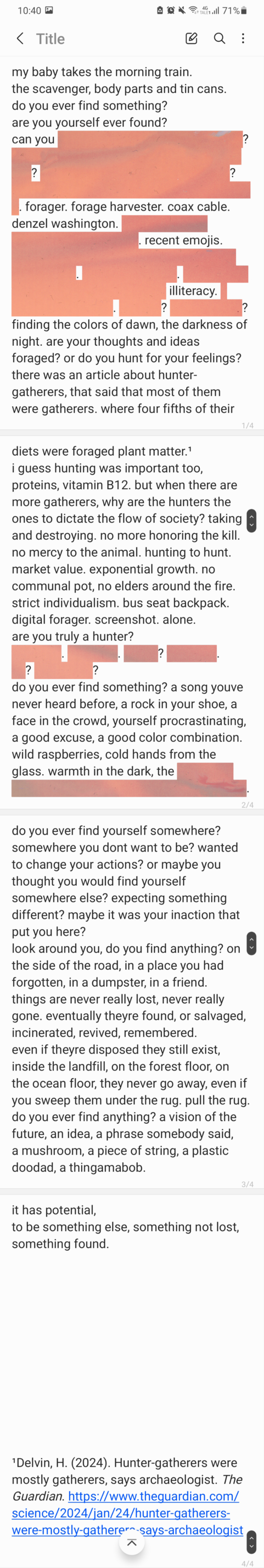 finding the colors of dawn, the darkness of night. are your thoughts and ideas foraged? or do you hunt for your feelings?