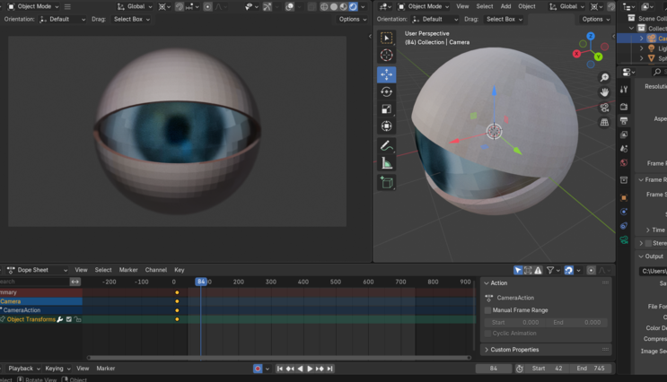 Modeled an eye after, kind of silly looking, animating it struggling to stay awake, recording keyframes from manual mouse movements.