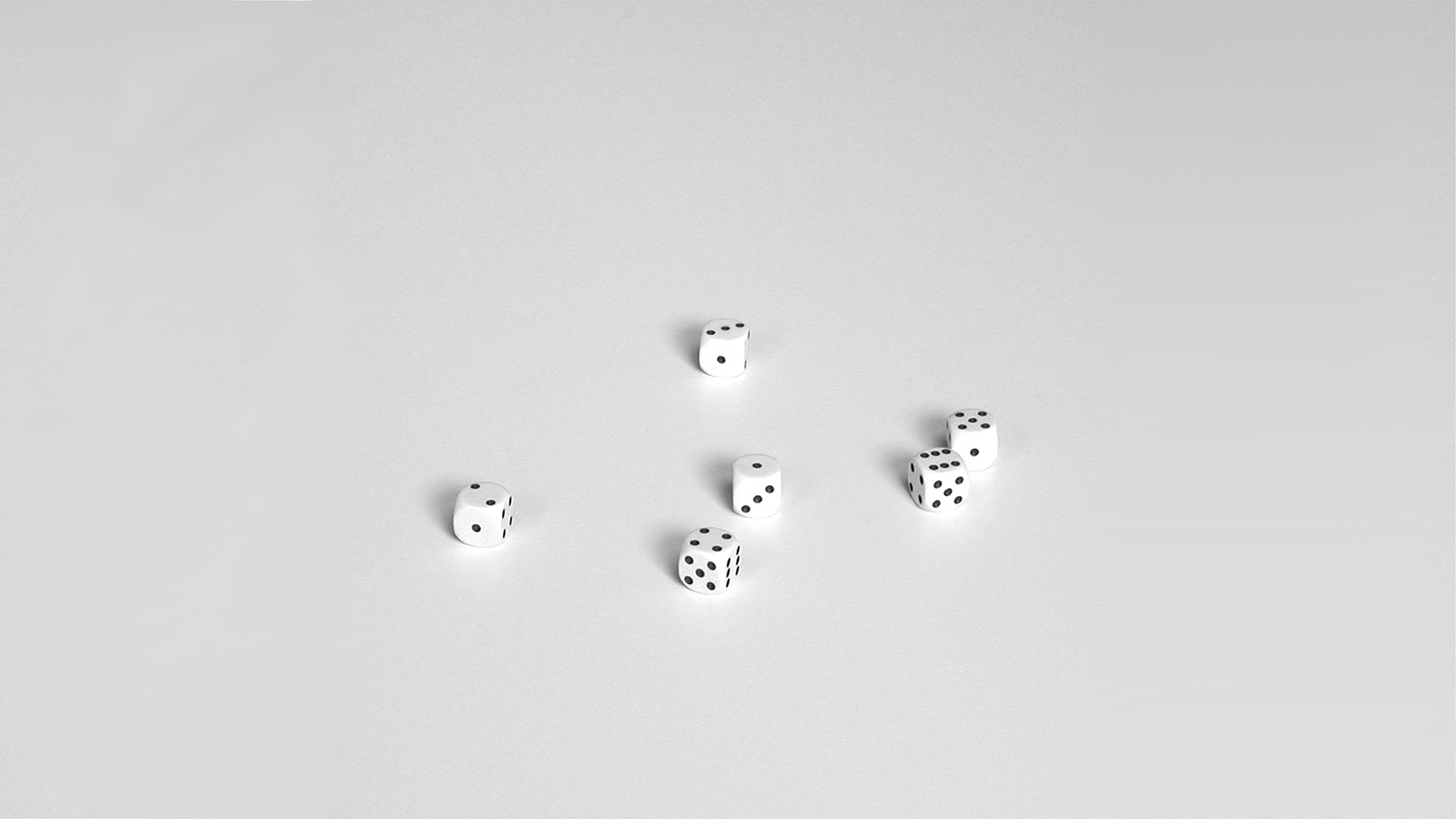 A dice roll is the very image of randomness. Every day since September 1, 1994, I have rolled a set of six dice, written down the number combinations and collected the numerical material in an ever-growing physical archive. The project is entitled "one and one hundred dice rolls a day". I use this numerical material as a starting point for transformations by translating each number, 1 to 6, into one sign, shape, sound or word, and by creating rules for how these translations will be used further. This method shapes the concrete outcomes and results in series or other forms of progressions and connections. What unites the different sub-projects that stem from the dice roll project is an exploration of the inherent nature of this special material and its potential for form, expression, and visibility, as well as a fascination with the diversity and variations generated, and with results I cannot fully predict. In this exposition, I will describe, make visible, and reflect on the working method, process, and the development of the formal language and expressions that have emerged from this ongoing, and in many ways interconnected, artistic project. The project is seen from a place (that of me, the artist's perspective) and is developed from a point (the dice rolls with dots representing numbers).