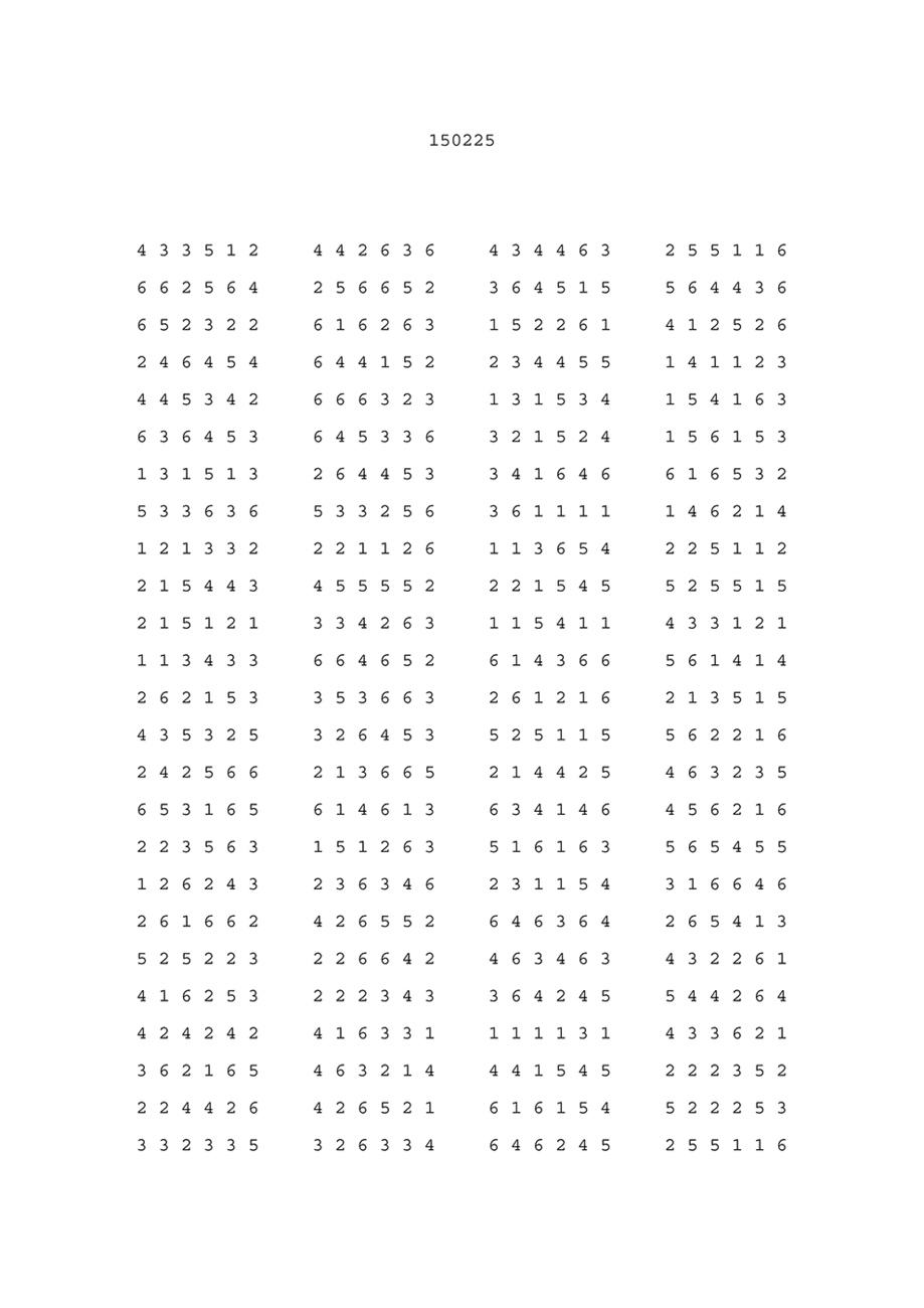 det første, nedtegnet som tallrekker på ruteblokken. Tallrekkene står som fire kolonner