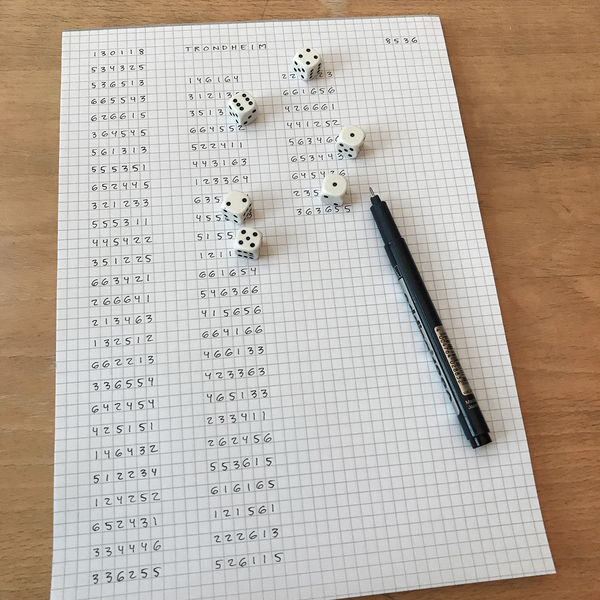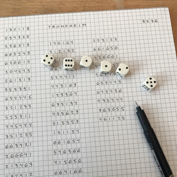 Tallmaterialet fra terningkastene som jeg samler i denne stadig voksende installasjonen,