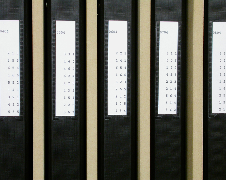 ett hylleelement er ett år, en perm er en måned, ett oppslag er en dag.
