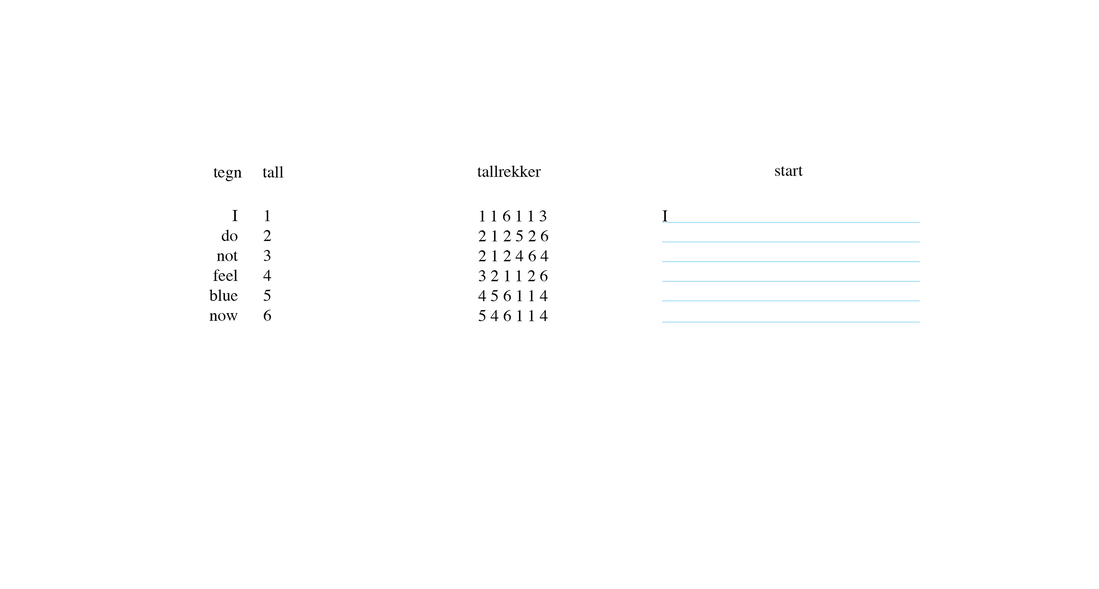 tallkombinasjonene eller å transformere tallmaterialet tall for tall.