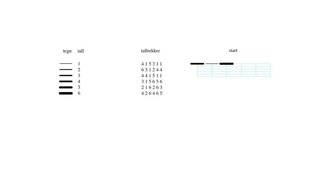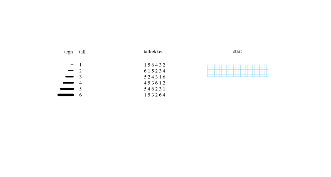 utgangspunktet for tallmaterialet, fra terningen: prikken. På tradisjonelle