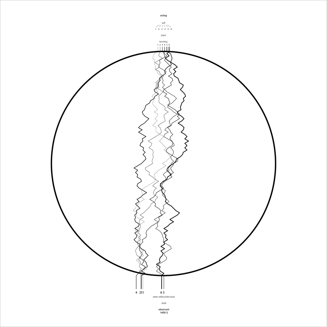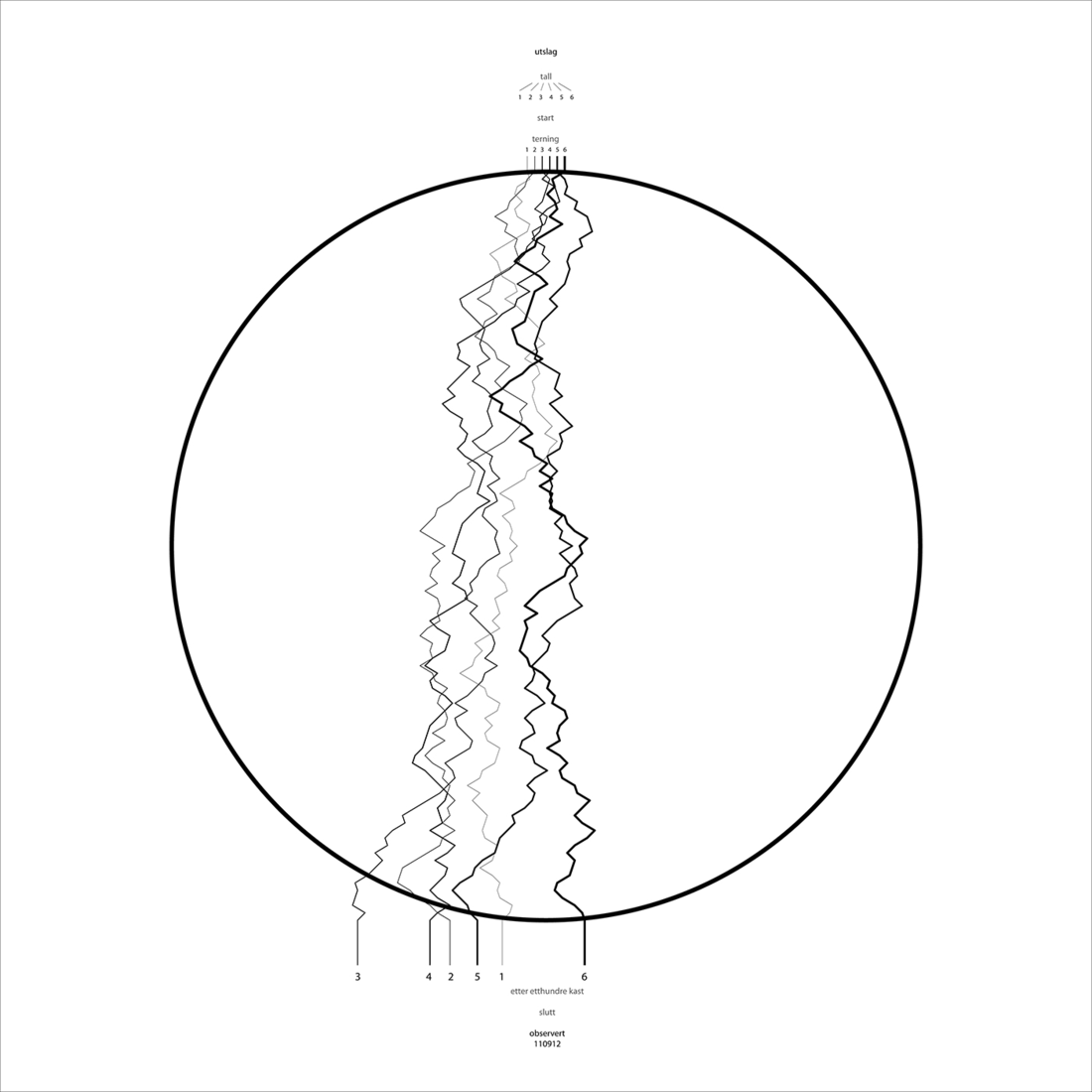 man linjeforløpene til de seks terningene gjennom etthundre kast og ser