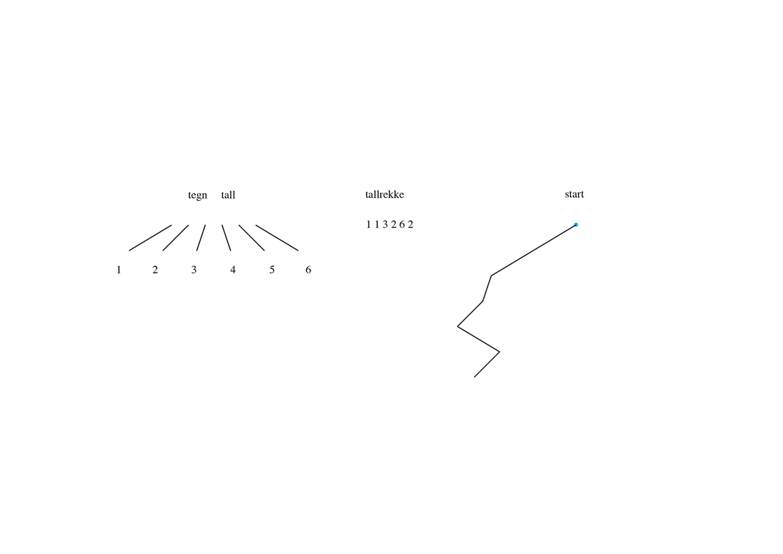 Med denne tegnformen og regelen begynner streken å vandre på flaten