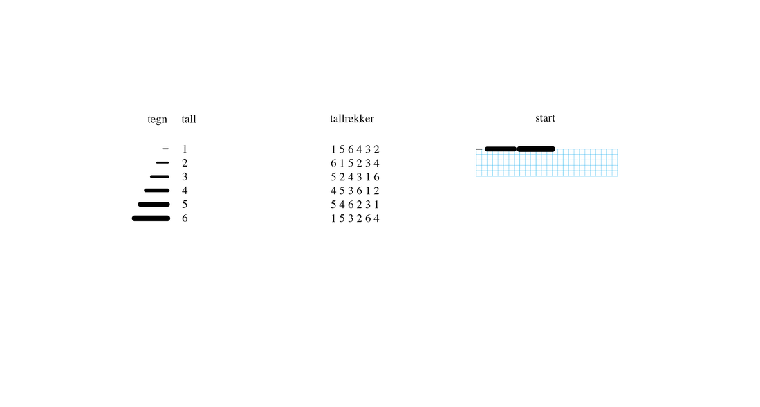 in long lines – one for each dice.