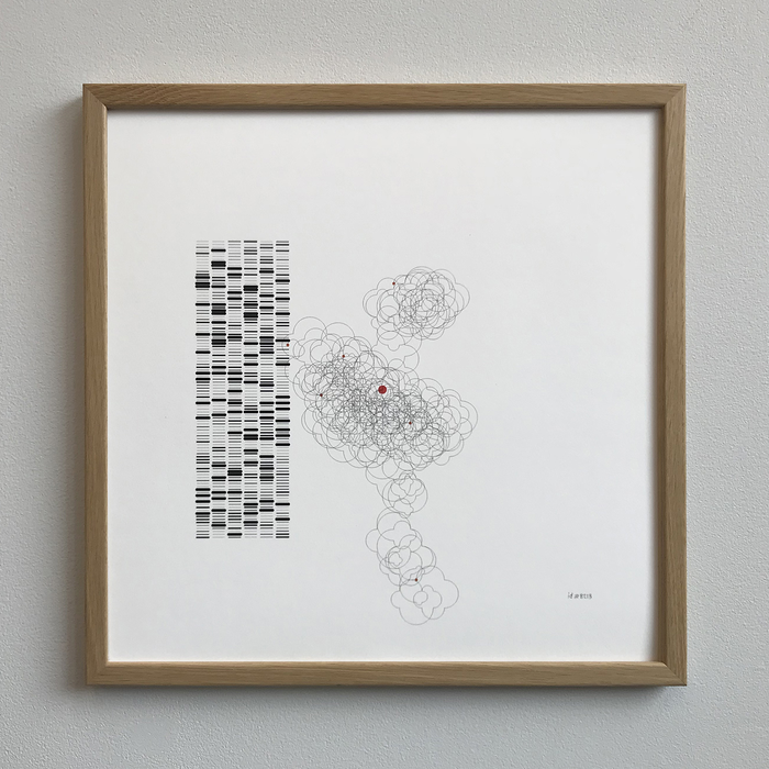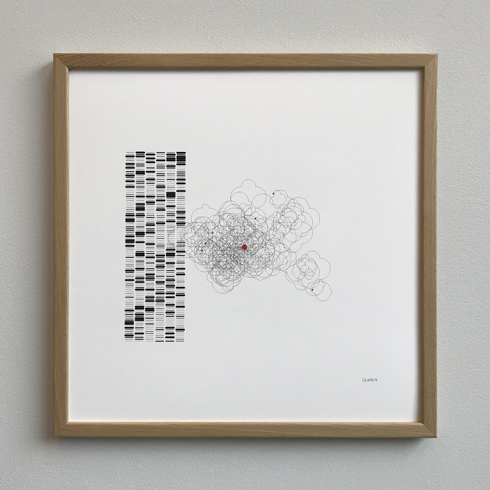 In this series of drawings, each drawing is based on one day's numerical material – transformed with two