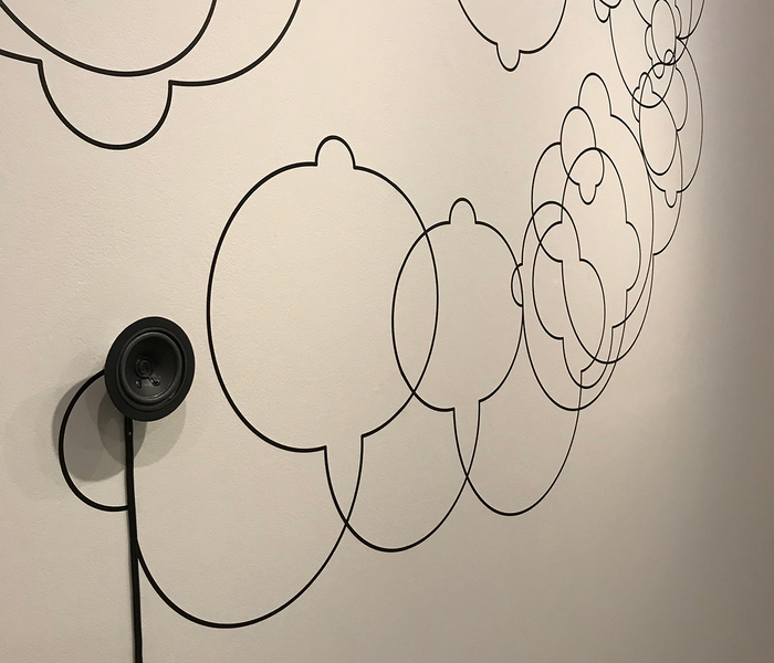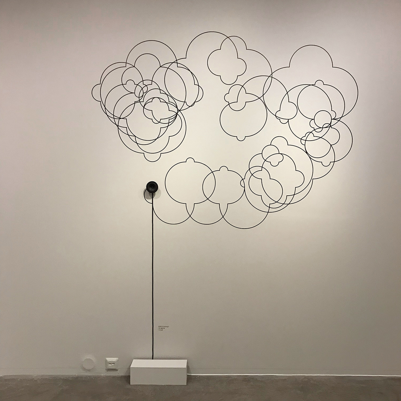 The sound is played at a low volume so that it lies as a somewhat withdrawn, but still present, pulse in the room.
