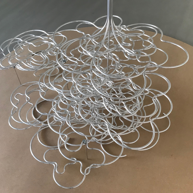 A long sheet with a printout of the number sequences that form the basis for both the sculpture