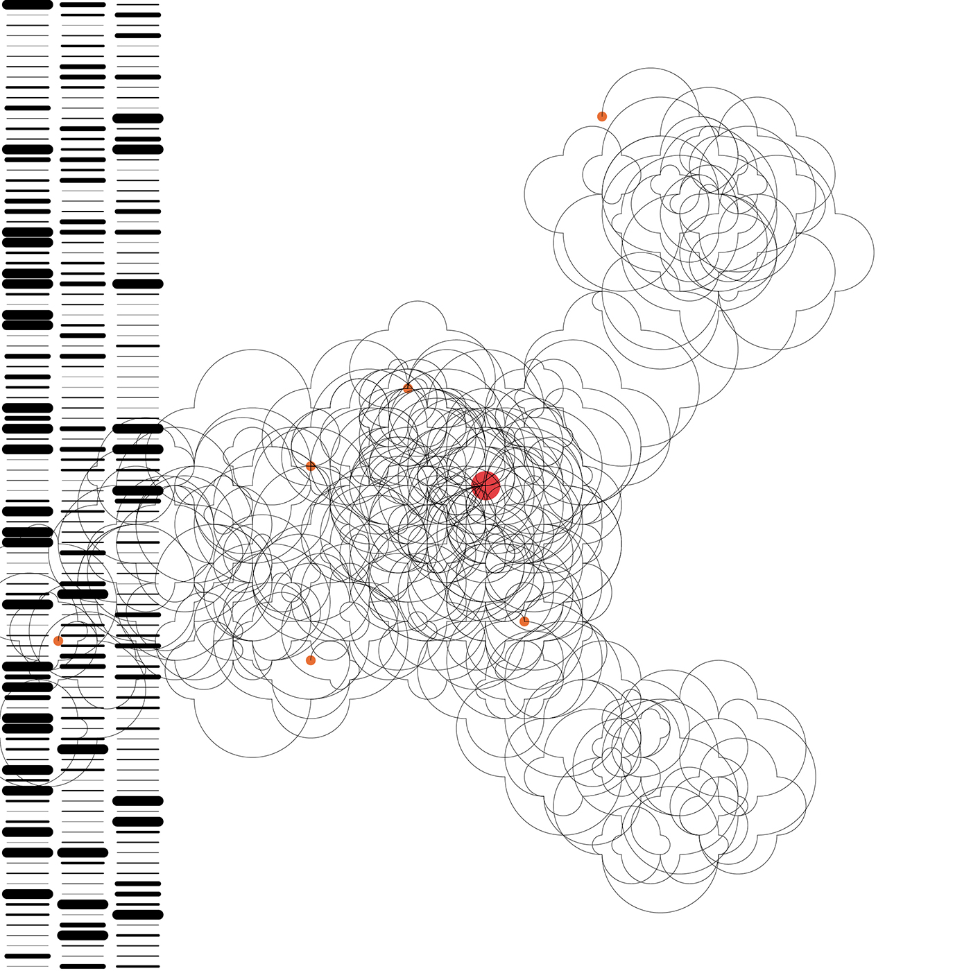 One consists of straight lines of varying thickness arranged in columns – one column for each of the six