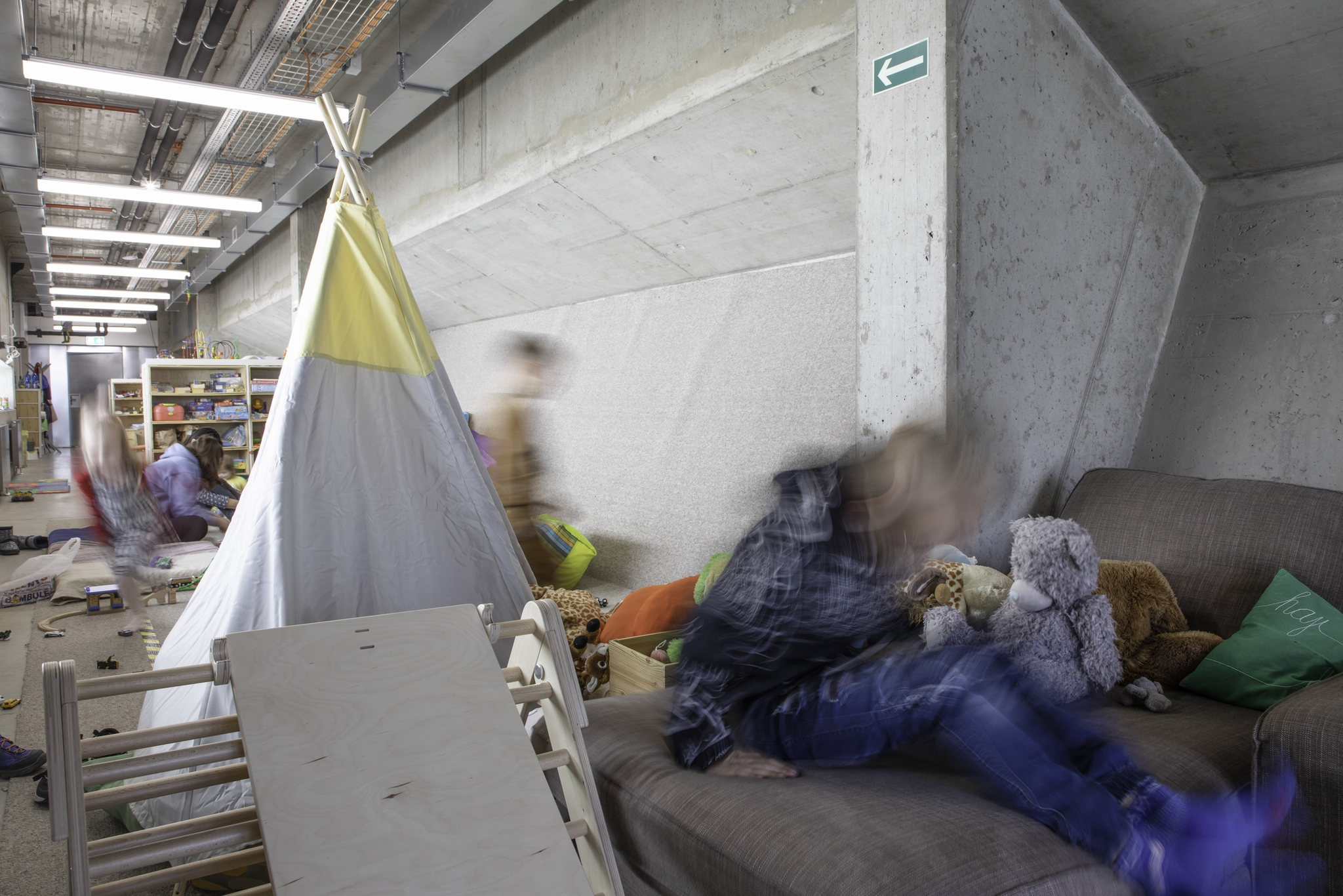 Zdejší neformální dětská skupina fungovala na podobných principech jako „guerillová školka“ na UMPRUM – dětem se ohřívala donesená jídla v komunitní kuchyni, která sloužila také rodinným oslavám, slavnostem, společnému vaření nebo pečení, a rodiče předávali své děti do péče vychovatelů na vlastní zodpovědnost.[31] V této šedé zóně, za hranicí legislativních požadavků běžně kladených na zařízení předškolního vzdělávání, se TOTEMu i dobrovolníkům podařilo skupinu udržet v provozu mimořádně dlouhou dobu.[32] Zřejmě i díky nadstandardní podpoře vedení Plzeňského kraje vydrželo centrum v provozu do července 2023; další rok skupina fungovala pod záštitou městských sociálních služeb.[33] Vedle každodenního programu se zde konaly také prázdninové adaptační skupiny.[34] V roce 2022 se jich uskutečnilo osm, v následujícím roce tři.[35]