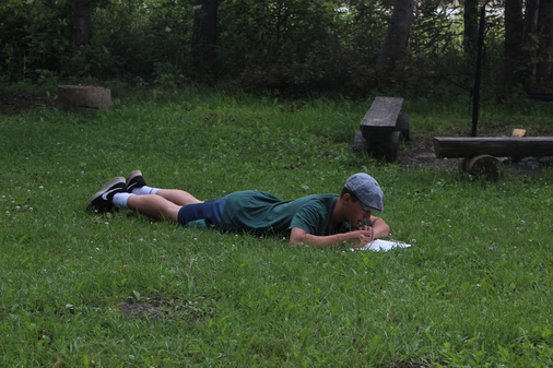This exposition features four methods of sensory drawing: 1) Listening, touching and smelling the forest, 2) Looking from another perspective, 3) Drawing as observing and reflective learning, and 4) Drawing focusing on ecological relationships. Some of them focus more on multisensorial experience in nature, some to close observation, some to relationships.