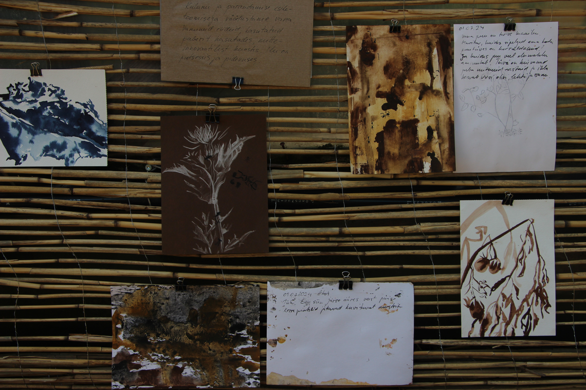 Sometimes the inexperienced drawer may feel intimidated by realistic depiction because of comparing their skills with more masterful examples or their own imagination. Based on the participant's feedback, it can be said that the previous experience with drawing affects the confidence and if there is no direct guidance of how and what to draw, people tend to focus on depicting individual plants. In this case they need some tips, guidance and encouragement to start. I have noticed that it may not be so easy for a beginner to focus on reflecting their perceptions while drawing, because their attention is managing the depictive side or getting to know the tools and materials. This may also affect enjoying the process, thus I would recommend to provide less choice of materials for the beginners and diversify the materials for the advanced learners. But also the attentive observation and the attempt to precise depiction are good ways to relate to the depicted nature. Noticing and distinguishing are the first steps in creating stronger connection with nature, because once noticed we may notice the portrayed creature again, moreover, next time we may also notice on whom we sit and whom we eat. Our lives are intertwined with many others, living means killing someone else. Our creative work is someone's life. Noticing them and our interconnectedness may help to be grateful and more empathetic.