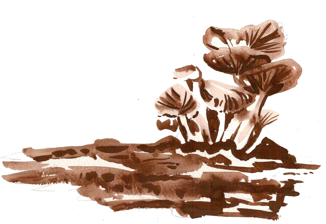 Materials. You can use any drawing materials, but it is especially nice to conduct this with self-made watercolours from natural pigments. Ochres, siennas and umbras and also local soil pigments are perfect to catch the time of decay and represent the life of soil.