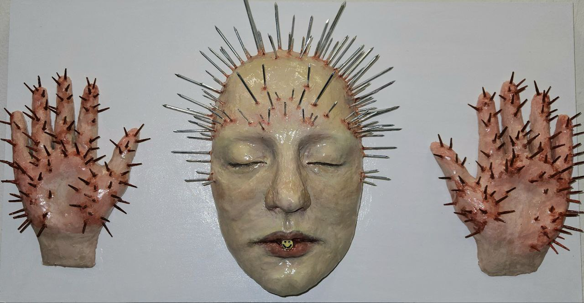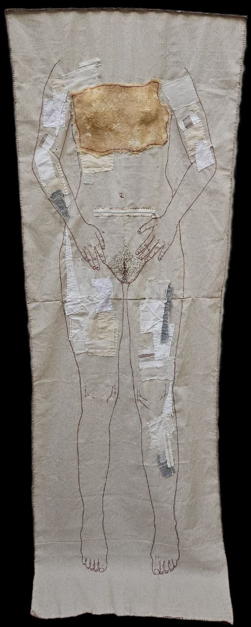 One of the main mediums of my practice is textiles, especially embroidery. I believe that textile holds thoughts. In the process of sewing, each stitch holds memories, absorbs them into the thread, and stays there forever. With this material I reconsider traditional “womanhood” practice, using it as a drawing media, as I did in My body is my temple. In sculpture, exposing the feeling of disgust, I make people see that the depicted body or place is real. A significant influence on my work comes from medieval art, which is also filled with suffering of the body. Dirt and scars enhance the presence of the flesh, its mortality, escalating fragility which the human body represents.