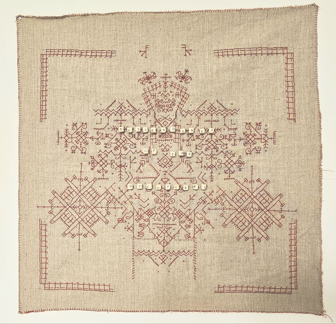 I consider myself a mixed-media artist whose multidisciplinary practice encompasses textile art, painting, graphic arts, and sculpture. Coming from a mixed family and being raised as a national minority in Latvia, my work delves deeply into themes of national and cultural identity from feminist point of view. As a woman being raised and taught in a very traditional, patriarchal, post-Soviet country, with my artistic practice I challenge borders imposed by nationalistic ideologies, question the societal divisions and inequalities.