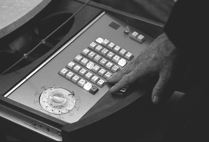 Figure 7: President Lyndon B. Johnson's telephone (1966). The Lyndon Baines Johnson Presidential Library, White House Photo Office collection. LBJ Library photo by Yoichi Okamoto.