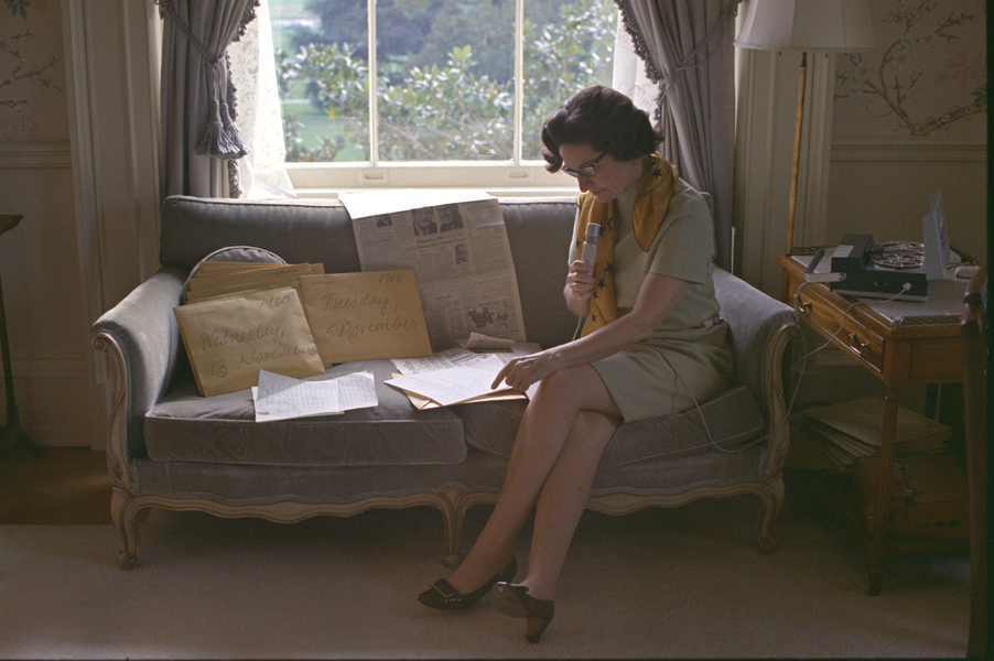 Figure 9: Lady Bird Johnson recording the day's events (1968). The Lyndon Baines Johnson Presidential Library, White House Photo Office collection. LBJ Library photo by Robert Knudsen.