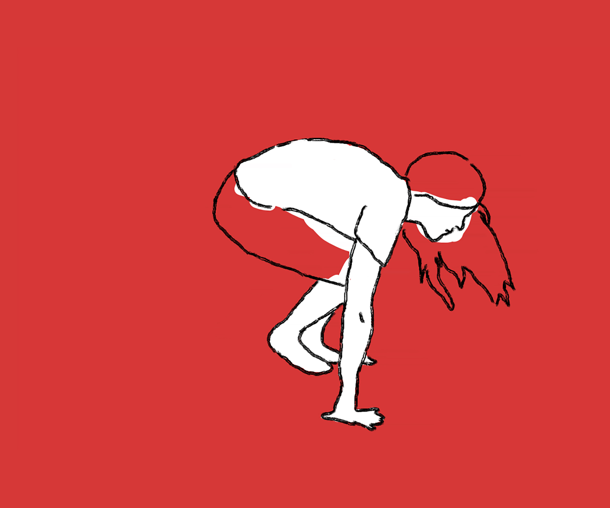 A loopable part of each movement improvisation was cut out and turned into an animation using rotoscopy, a technique in which filmed footage is used as the basis for animation. By drawing the contours of the movements, they could be rendered in a way that was both natural and stylized. The illustrative manner accentuated the motion and, in a sense, also depersonalized the performer. It allowed subtle details in the movements to become more visible; such as when the toes brace backwards to maintain balance, or when the shoulder blades lift from the ground as the legs kick upward.