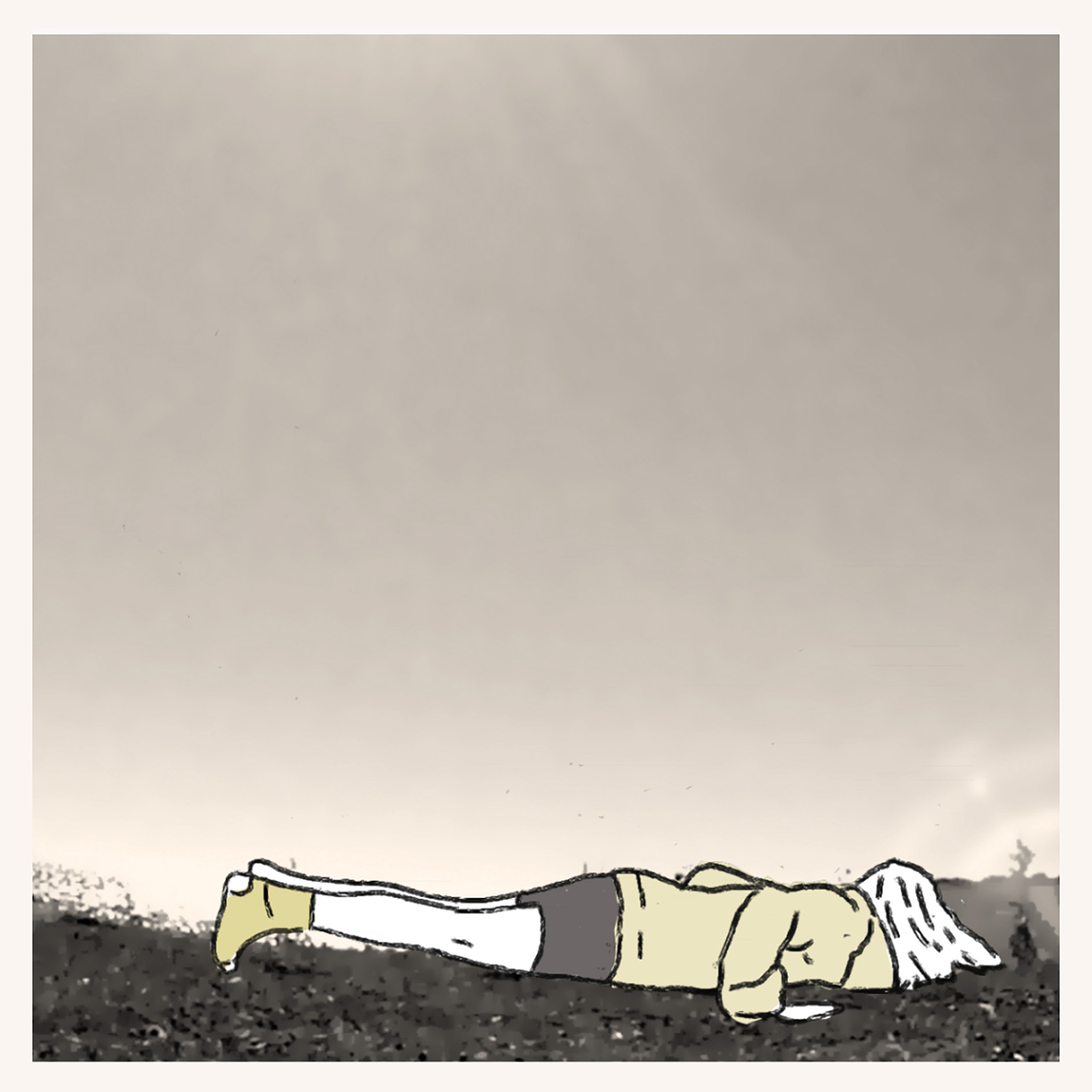 The animations were created in 12 frames per second, and were slightly slowed down. They were placed in various filmed, deserted settings with wihite frames around them to mark them as sections in time.