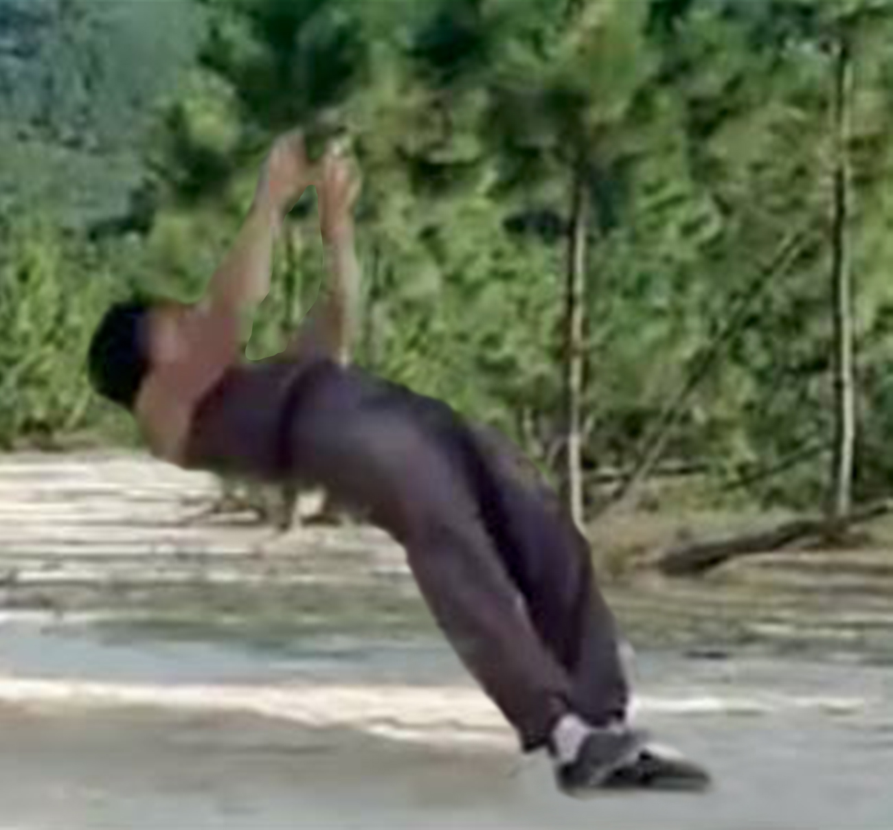 The improvisations where filmed using a fixed action camera. I didn’t decide in advance how the movement should be performed, but let the drawing, the inspiration of the moment, and the body’s ability direct the course of events. It soon became clear that certain sketches were relatively easy to interpret, while others were considerably more difficult. Performing a backflip from a jetty, for example, appeared as completely impossible, and in that case, the failure to execute the movement became the material used.