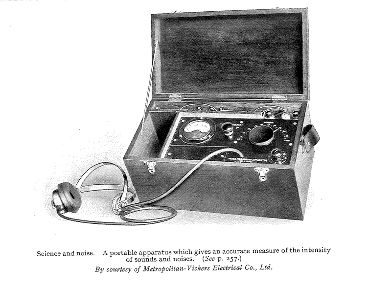 Figure 5: “A portable apparatus which gives an accurate measure of the intensity of sounds and noises,” in (Huxley 1934: facing p. 256)