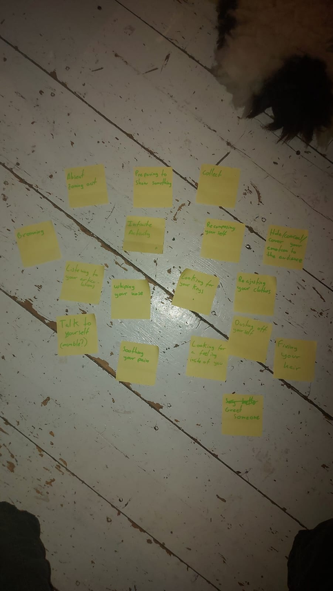Now is the beginning of my practice-led research. The solo was a throwing of the cards on the table of interest I needed to go through to see what was there, at that time. From that, character research.