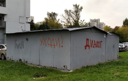 Instead of establishing a much discussed “dialogue” that people demanded, the authorities just wanted people to shut up, disperse, and go home. The state spoke with metallic recorded voices giving orders, and played long outdated, laughable songs. In rare occasions when a state representative condescended to speak to the people, it was usually a riot squad commander ordering protesters to disperse or surrender, persuading them to proceed to an autazak “on their own will”.[4]