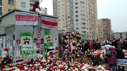 On 11 November 2020, thirty-one year old Raman Bandarenka was beaten at the Changes Square after he went there to stop pro-regime vigilantes from destroying the white-red-white decorations. These people snatched him into a minivan and later brought him, beaten and unconscious, to a nearby milicyja station. He died in a hospital the next evening, and thousands of people walked and drove to the Changes Square to mourn his death, leaving candles and flowers at the place where Raman was beaten and abducted. This playground that gave place to numerous concerts, theater plays, and friendly evenings. now became a place of a spontaneous memorial.