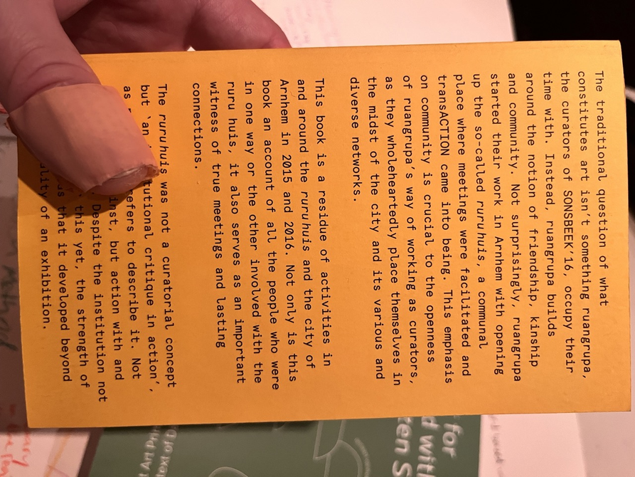 reinaart vanhoe is a teacher on WdkA and wrote multiple books and zines on ruru and complex, social, relational art praxis. He gave me three of his publications to read.