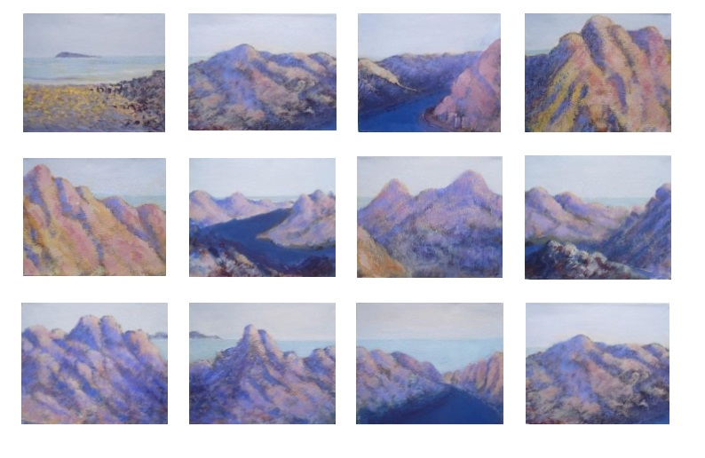 Merleau-Ponty suggests that in perceiving the complexities of our surroundings, we can simplify our objective by focusing on “something” significant the moment we open our eyes.[51] This “something”—an “indefinite” vision”[52] of an object experienced as a vision of “je ne sais quoi” or “I do not know what”—is brought back into existence within the painter’s own speculation.[53] This act of assumption employed by Cezanne in his Mont Sainte-Victoire seen from Bellevue, based on a belief that objects are not flat, nor are presented in isolation but rather in relation to each other and to their surroundings, inspired the conception of the passage of time in space in my Encounters series (2010-2011). This underlying principle of artistic composition was employed to develop alternating concealed and revealed peaks and valleys in order to demonstrate how something invisible might be inferred without being literally substantiated. In Encounters, roads appear and disappear through an intricate maze of mountains as observed on a personal journey throughout Lima’s rocky and sandy coastal landscapes. Although the roads seem to meander in front of the mountains, it is assumed that they continue behind, around and beyond them. Hence, the mountains are not presented independently but rather in connection to the sea and islands behind, the roads below, the sky above, and other unseen objects surrounding them—all connected through a continuity of time in space. Accordingly, this compositional arrangement can also be applied to the act of painting in which colours are not processed in isolation, but rather in relation to each other, just as the background and the middle ground relate to the foreground, all painting processes unfolding as a whole. As Merleau-Ponty proposed, if one is going to paint something indiscernible, one should not only link mind and body but also remove unnecessary information that might rob the continuity of perceptive freedom.[54] In Encounters, the concept of the continuum acknowledges that which remains unseen behind the hills is incorporated in relationship to the whole. The invisibility notion of the limitless passage of time thus is revealed through the visibility of paint.