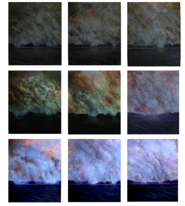 In part, the complexity of nature’s vastness conveyed in Turner’s Snow Storm as something dispersing and dissolving, inspired the conception of the passage of time that underpins my Unfathomable series (2010-2012)—a series in which the viewer is directed to contemplate suspended landscapes that may evoke the threat of falling and the uncertainty of not knowing where the sky meets the earth. Here, the appearance of an eerie feeling of simultaneous emptiness and fullness underscores an illusion of space that stirs sensual responses in painting presented as a register of the immateriality of the passage of time in space.