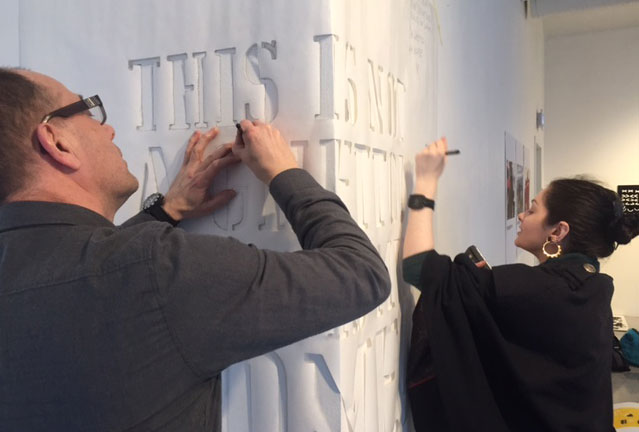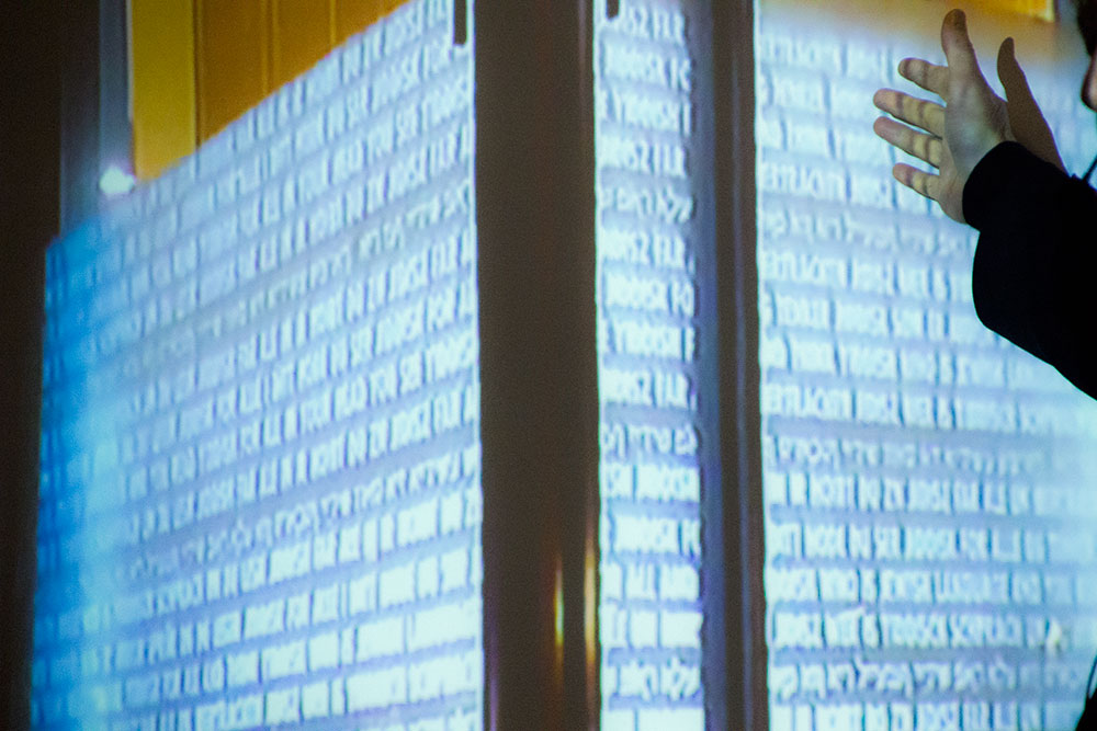 Associate professor Charles Michalsen from the Institute of Design, KMDBergen presented an interactive installation where people have to cooperate to make sense of the text.