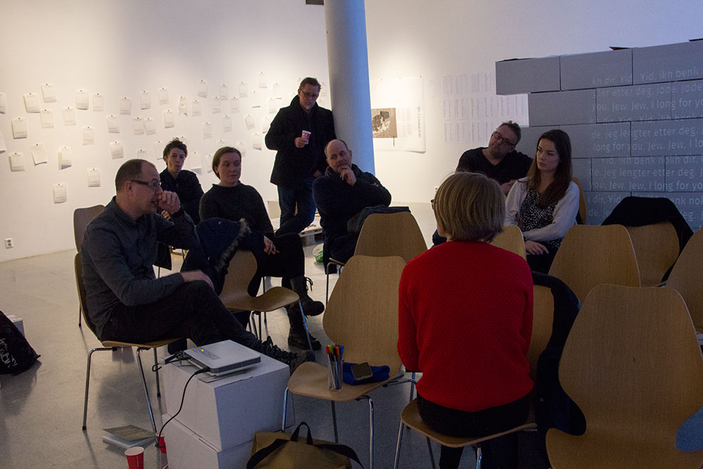 Among the projects is Pictogram-me, which held it's final presentation at the Norwegian Artistic Research Programmes forum in Stavanger in October 2016, Tam, wtedy - teraz, tutaj, which has completed a research based course in autumn 2016, and intends to be developed into a more comprehensive research project and Walking with Yiddish who has held several exhibitions, among others in the Holocaust Museum in Oslo. We want to link these three projects closer together and further develop them as a joint project with the working title “between languages”. Our first step is inviting you to our seminar in the Bergen Public Library to highlight and discuss meeting points and opportunities, followed by conversations and events in ROOM8 (Vakserelven 8).