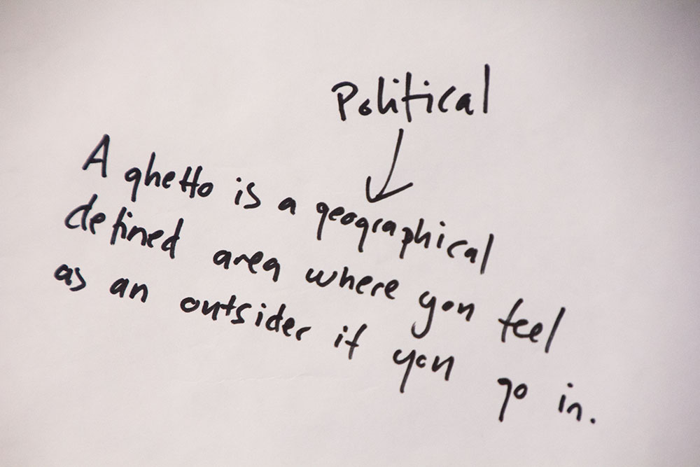 From the discussion and following workshops in ROOM8. Master student Synnøve Noteland from KMD Bergen presented an ongoing illustration project where she cooperate with an external writer. Associate professor Geir Goosen presented 'This is not a ghetto, it´s my (our) home'.