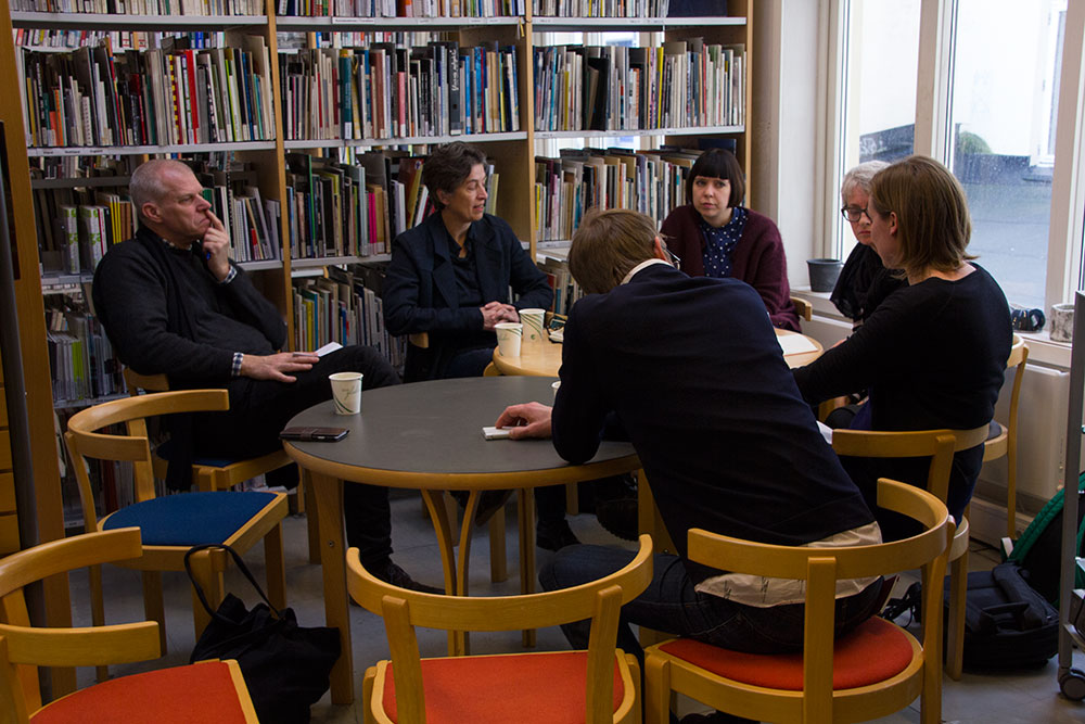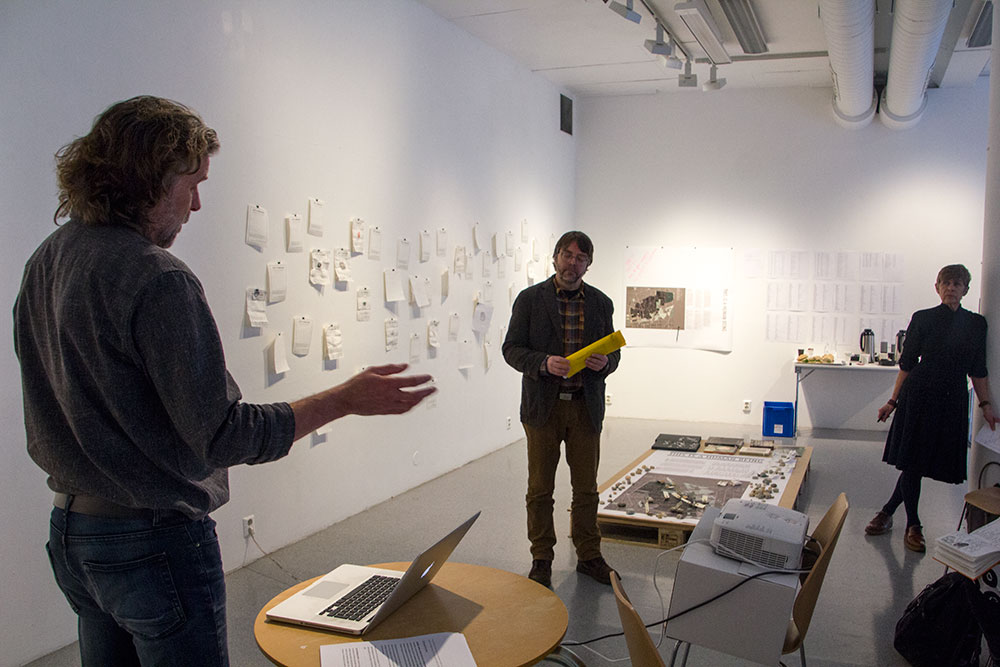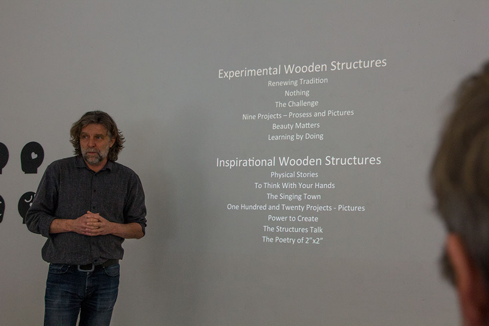 Professor Hilde Kramer presented 'This is an human beeing' and professor Petter Bergerud presented 'Experimental Wooden Structures'. Øystein Hauge from Institute of Fine Art commented on the projects, before the public was invited to take part in the discussions.